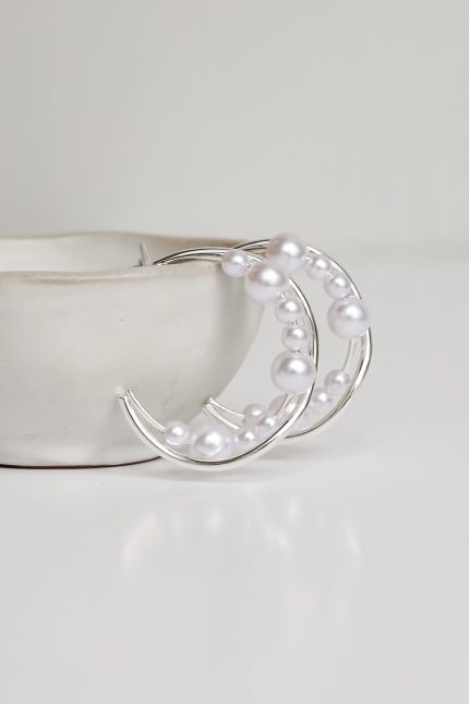 • Aiden Silver Pearl Double Hoop Earrings $62.00